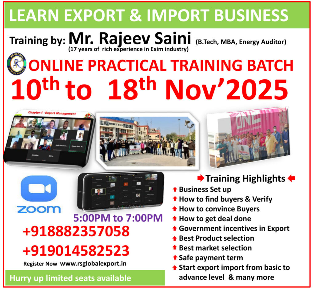 Enrol in the practical Import Export course offered by RS Global Export to gain practical experience in trade operations, logistics, documentation, and market analysis.